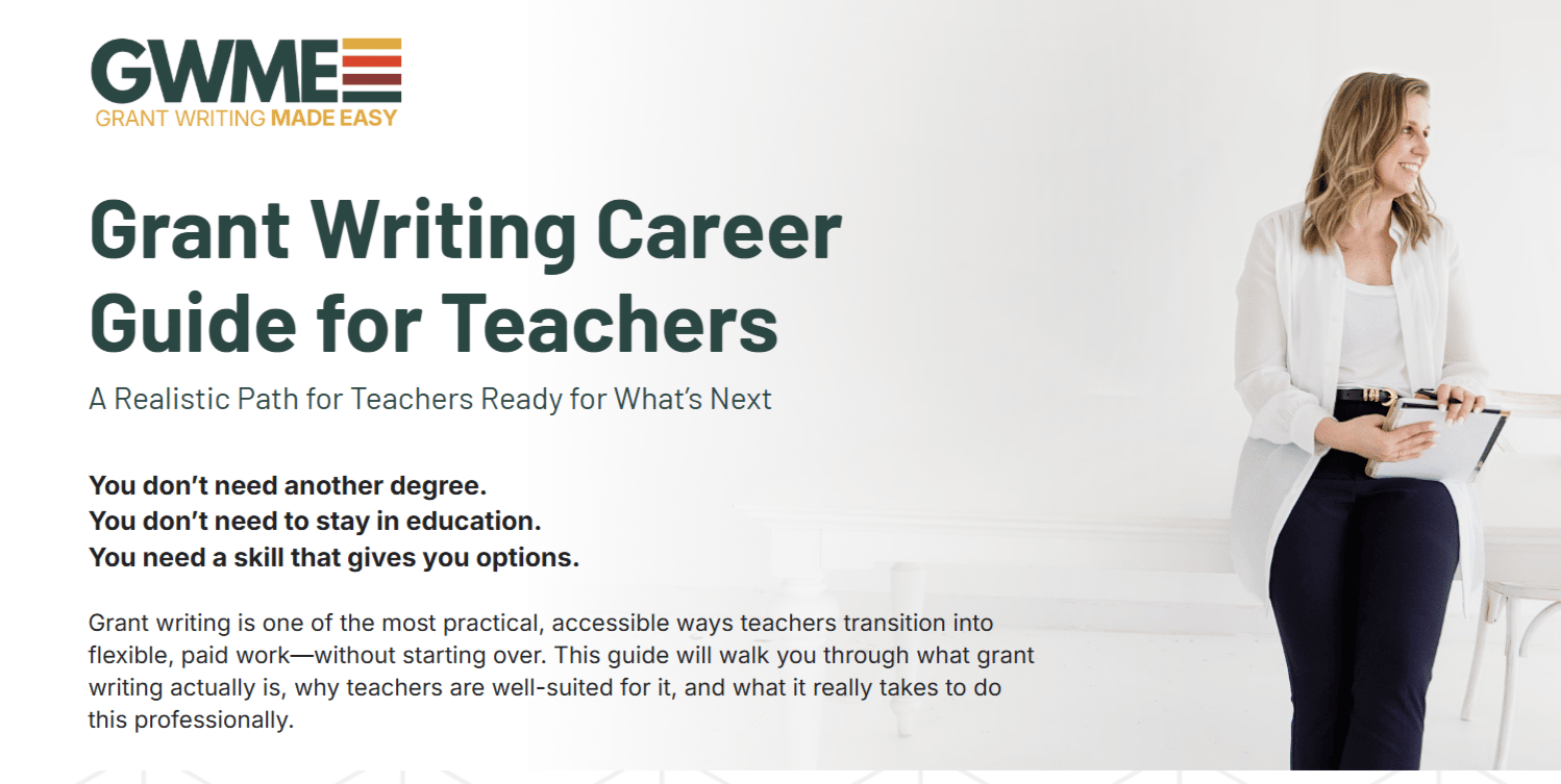 This guide was created by Grant Writing Made Easy, founded by Dr. Krista Kurlinkus, a former educator who transitioned from teaching into grant writing and consulting.